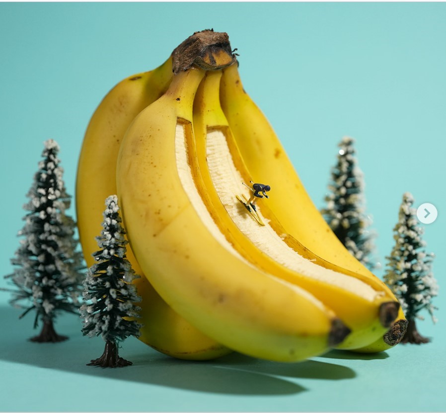or Banana Ski Hill Jumping (2024) by Tatsuya Tanaka, who is known  as the “artist of mitate,” which is the Japanese word for “to look again” and explained as “seeing or using something old in a new way or as something else” (Figure 5).