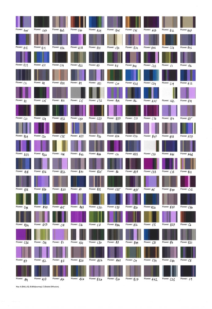 Despite being a relatively new technology, GPTs have already made their presence felt in the world of art. Anna Ridler’s Synthetic Iris Dataset (2023) is a prime example of how GPT principles can be used to create thought-provoking works of art. By generating 150 unique flowers and pairing them with interpretations offered by a computer vision API, Ridler was able to reveal cultural and technological codes that would have otherwise gone unnoticed. Drawing inspiration from Ronald Fisher’s dataset, Ridler employed language to uncover hidden meanings in words like ‘iris’ and ‘violet’ that can refer to both flowers and colors. This showcases how GPT technology can be used to bring a new, previously unachievable level of complexity and richness to art.